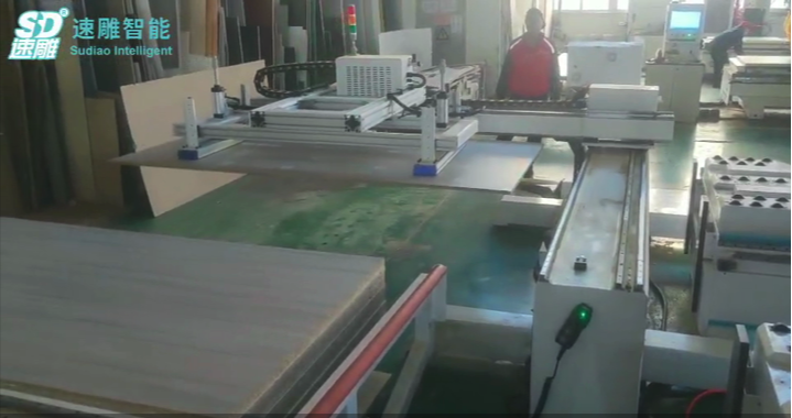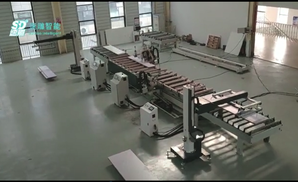 速雕智能一拖二開料機(jī)連線是一套自動(dòng)化程度比較高的數(shù)控開料解決方案。由于高質(zhì)量的設(shè)備以及完善的智能化生產(chǎn),受到各大板式家具企業(yè)的認(rèn)可,