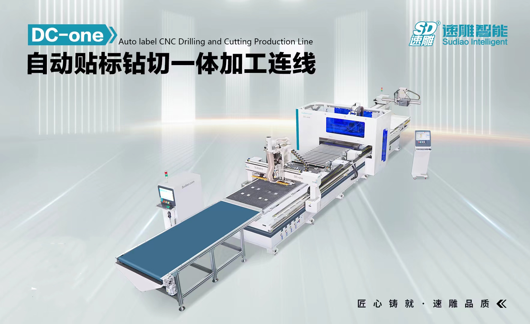 速雕智能鉆切一體機,相比較傳統(tǒng)板式家具生產(chǎn)線,實現(xiàn)板材開料、打孔、劃槽于一體,自動貼標(biāo),免翻板,免二次定位,上下同時鉆孔,鉆孔環(huán)節(jié)無需人工干預(yù),生產(chǎn)流程簡化,省時省力,加工精度和生產(chǎn)效率更有保障。