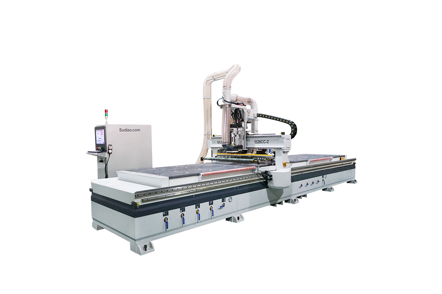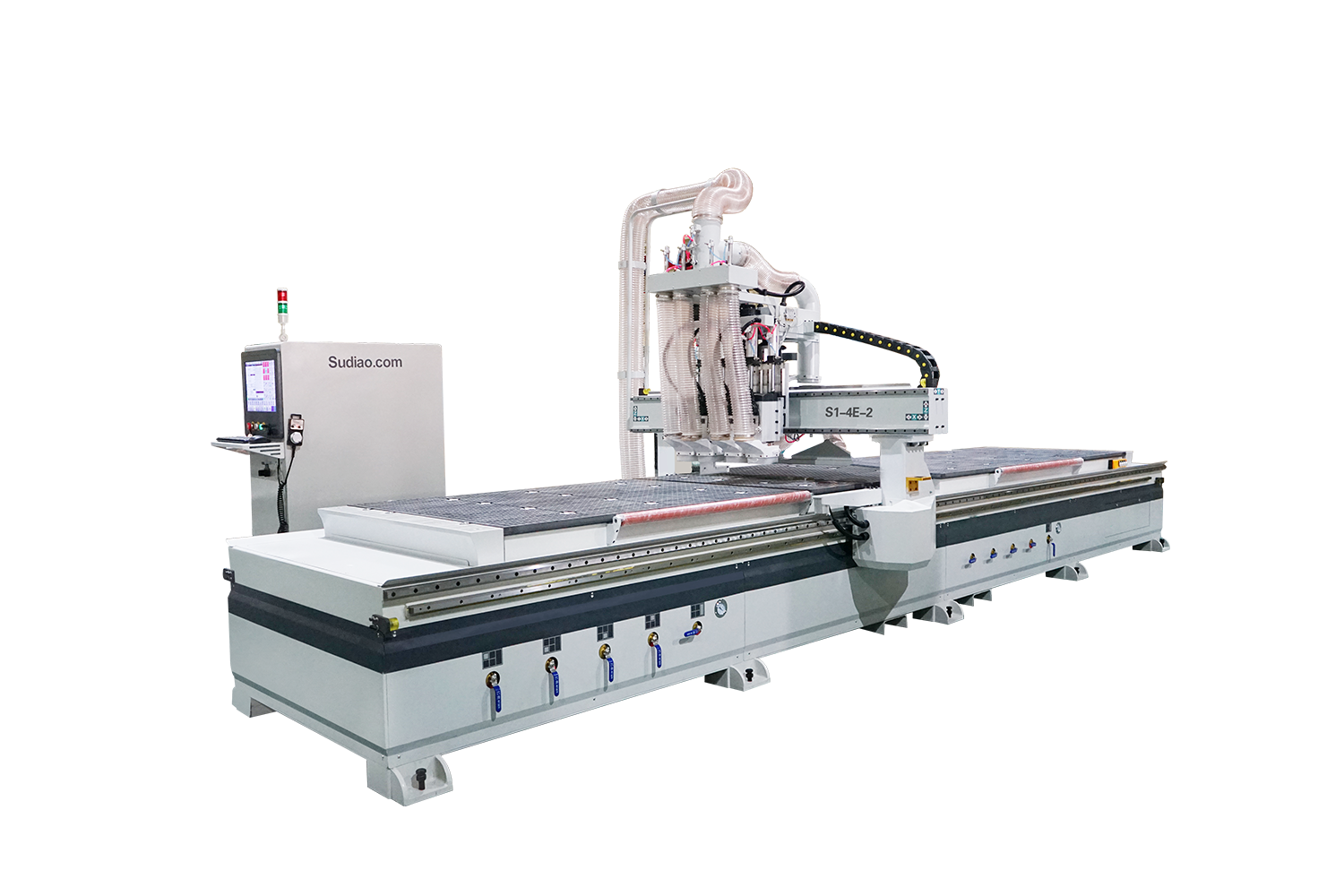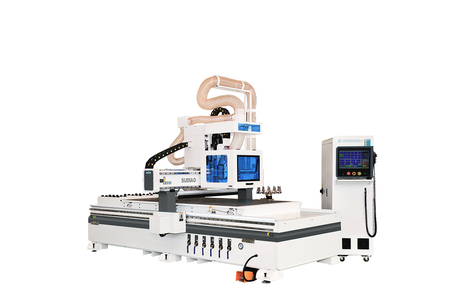 (1)門墻柜一體化,一機(jī)在廠,輕松應(yīng)對(duì)各種五金拉手、鉸鏈孔、拉直器、海棠角、門鎖、合頁(yè)槽等工藝。